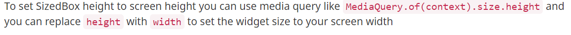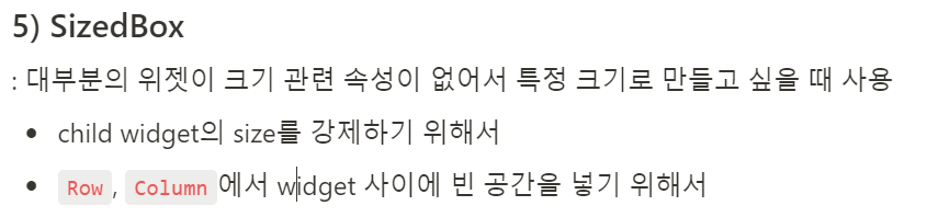 (Container의 경우 height와 width로, 기타 위젯의 경우 SizedBox최대 가로 크기 설정 필요)