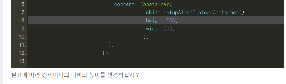 처음에 감싸주었던 Expanded 위젯도 지우고, SizedBox로 Container를 감싸주었다. +width지정