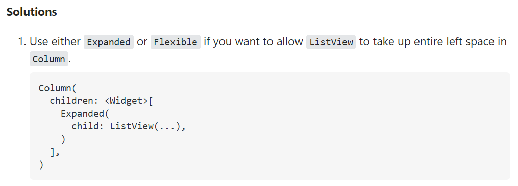 Expanded로 해결!! 근데 Row위젯에서 수직배치를 하고 싶어 Column위젯으로 바꾸니까 다시 뜨는 에러,,,