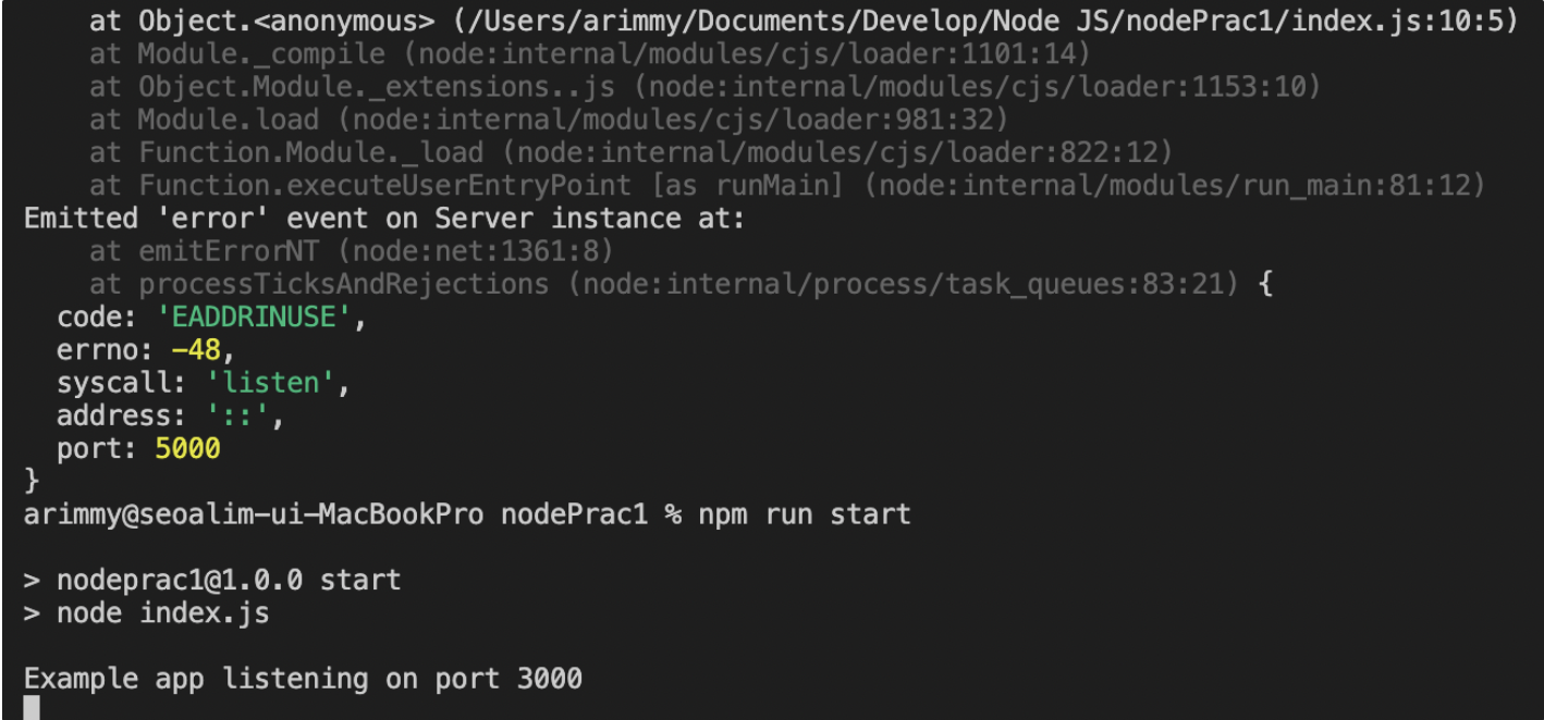 console.log(`Example app listening on port ${port}`); //해당 포트에서 실행(리스너)
