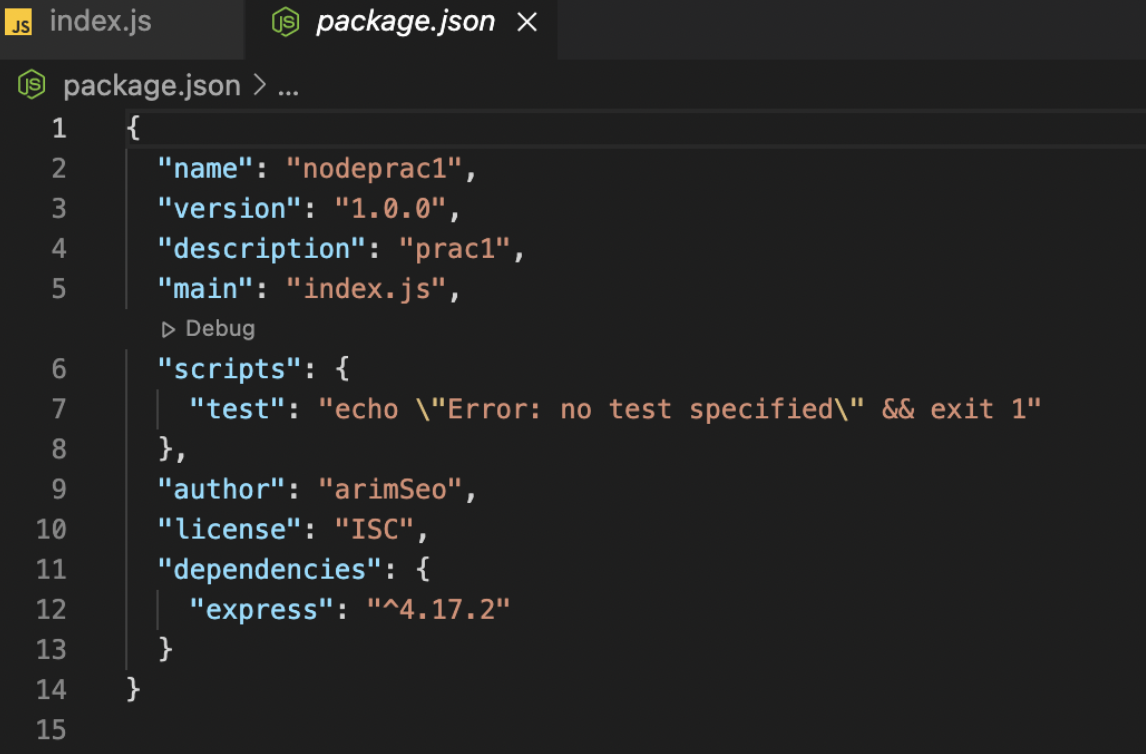 "start": "node index.js", //node앱을 실행 - 시작점이 index.js